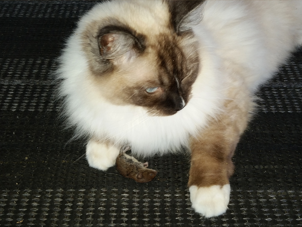 Gilleleje, d. 11.07.14 – Natten til lørdag var Alessio den stolteste kat i verden. Han fangede sin første mus – en spidsmus. Det gik ikke upåagtet hen!